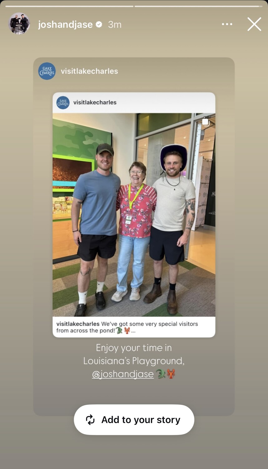 Two global influencers, with millions of followers between them, had a disappointing experience at a hotel in north Louisiana. On their own dime and schedule, they pivoted, accepting an impromptu invitation from a fan (who also happens to be the VP of Marketing at L’Auberge Casino Resort in Lake Charles) to check out our city instead. No one on our team had contacted them. There was no plan. No itinerary. Just a spontaneous visit in the age of instant storytelling.